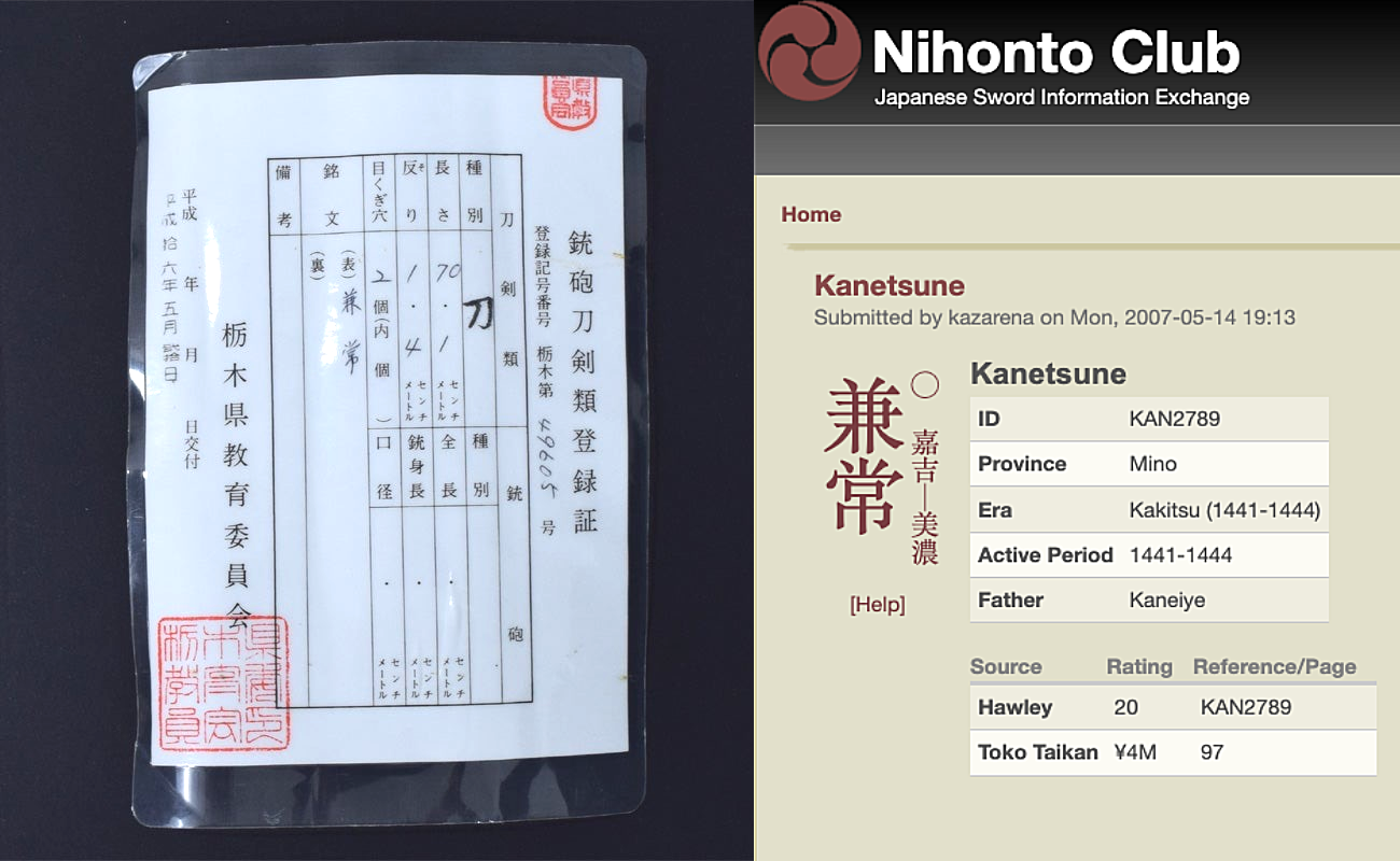 dalla Società per la Conservazione della Spada Giapponese (NBTHK Hozon Token)